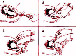 3.- Tirando del fórceps, el abortista extrae del canal genital el cuerpo del bebé, excepto la cabeza